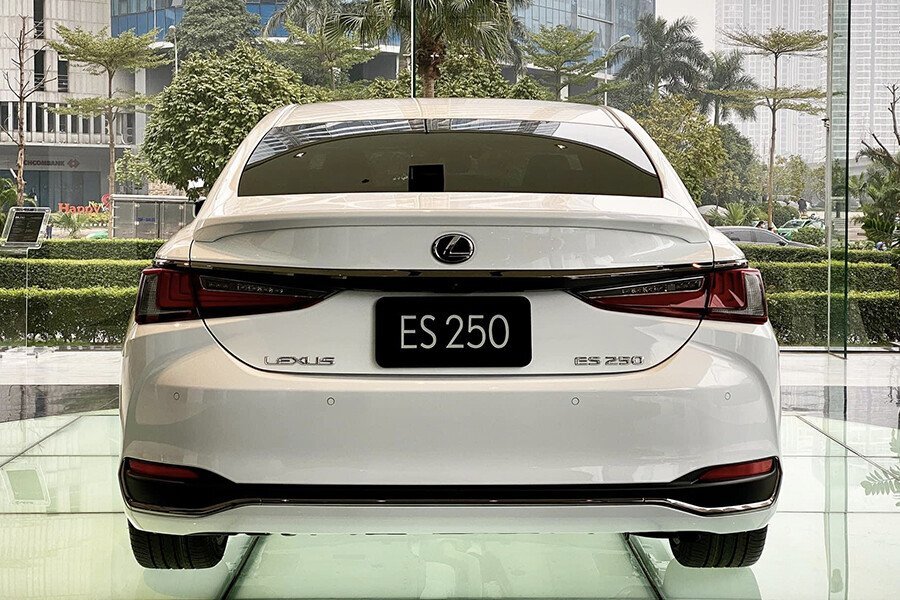 Hệ thống đèn sau của xe Lexus ES 250 có hình chữ L, kết nối với nhau bằng thanh crom to bản vuốt đều hai bên. Phía dưới có tích hợp camera lùi và nút mở cốp.