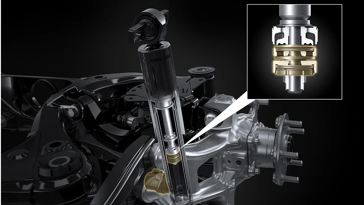 Lexus LM500h kiểm soát hiệu quả lực giảm chấn của bộ phận giảm xóc để mang lại trải nghiệm lái chất lượng và cảm giác mượt mà trong từng lần xoay vô lăng. Tính năng này đảm bảo rằng sự đa dạng về địa hình không ảnh hưởng đến hiệu suất vận hành và chất lượng chuyến đi.