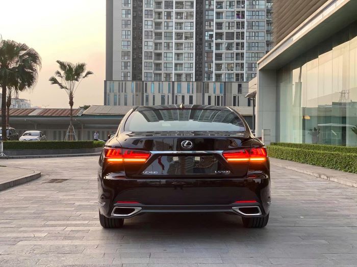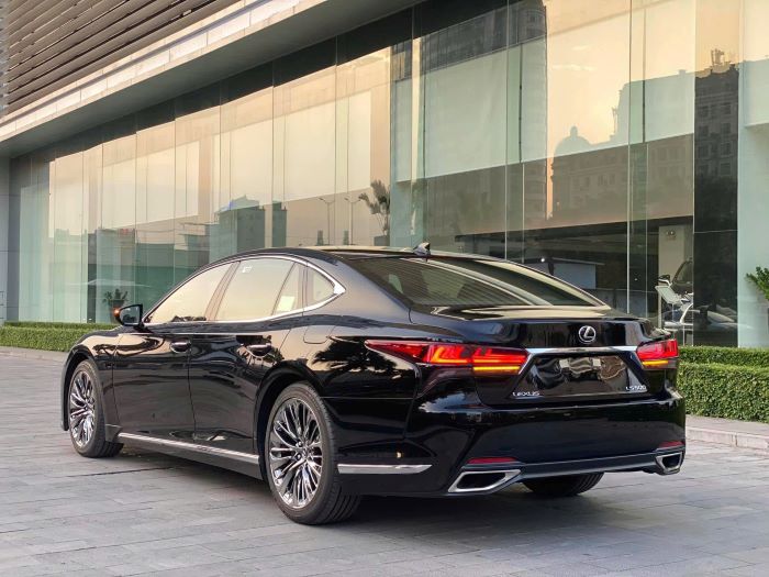 Đuôi xe Lexus LS500 nổi bật với dải đèn LED nhận diện thương hiệu chữ L thiết kế vuông vức chắc chắn tạo vẻ bề thế cho chiếc se siêu sang của các chủ tịch