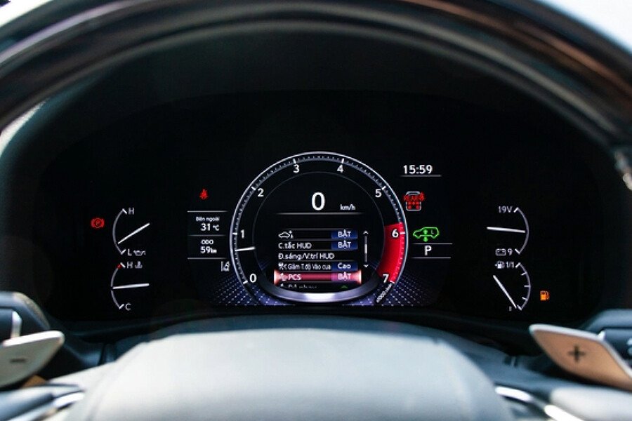 Bảng đồng hồ kỹ thuật số hiện đại có màn hắt kính head-up-Display.