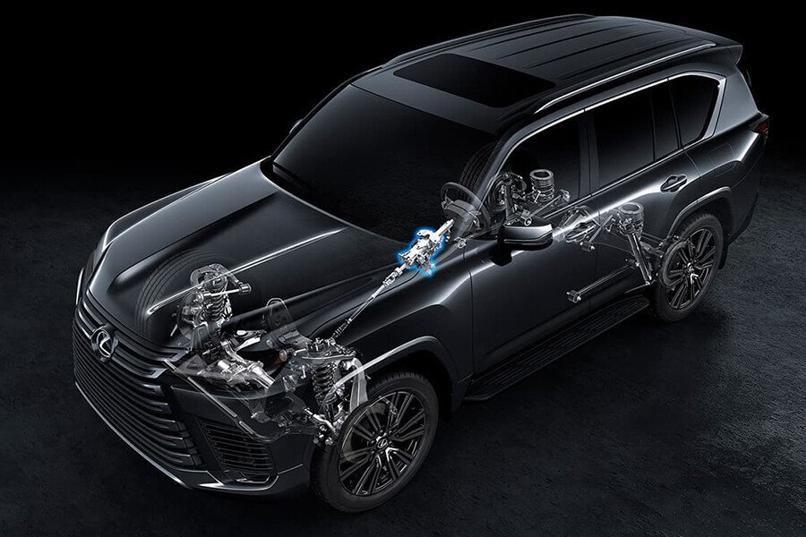 Hệ thống lái trợ lực điện EPS trên Lexus LX 600 Urban giúp người lái điều khiển xe với độ chính xác cao vào cua mượt mà trên địa hình phức tạp.
