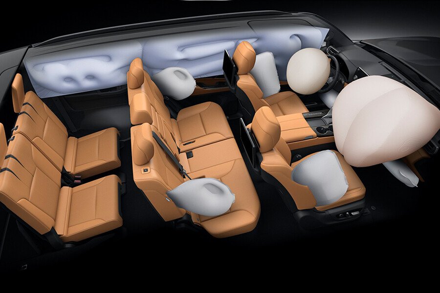 Tác động va chạm được giảm đáng kể nhờ hệ thống gồm 10 túi khí điều khiển bằng cảm biến, mang lại hiệu quả bảo vệ tối ưu cho mọi vị trí trên xe Lexus LX 600 Urban.