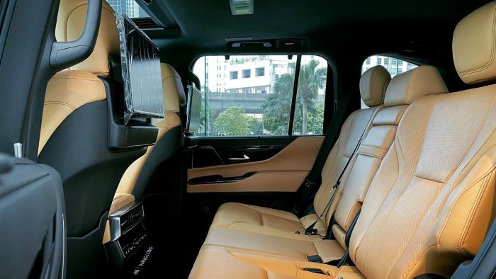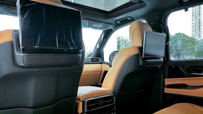 Lexus LX600 Urban được trang bị cửa sổ nóc có thể mở và màn hình gối đầu hàng ghế thứ 2 tăng sự tiện nghi và trang trọng trên xe.