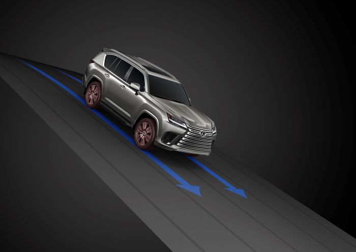 Hệ thống hỗ trợ theo dõi làn đường trên Lexus LX 600 Urban được nâng cấp với phạm vi phản hồi tăng, hệ thống thông minh này sử dụng các cảm biến để phát hiện xe cộ. Hệ thống tự động kích hoạt tính năng phanh tiền va chạm nhằm tránh các rủi ro tai nạn