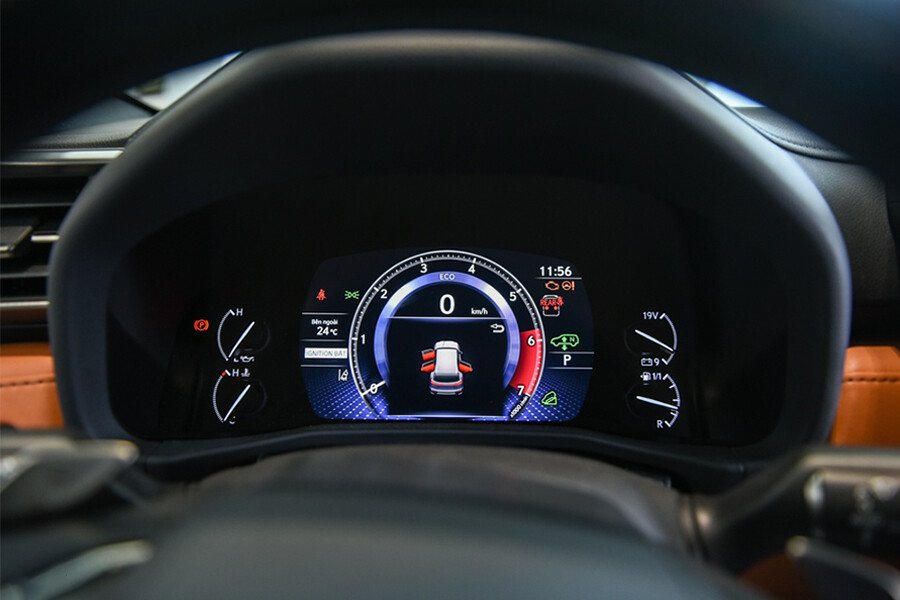 Bảng đồng hồ kỹ thuật số hiện đại có màn hắt kính head-up-Display.