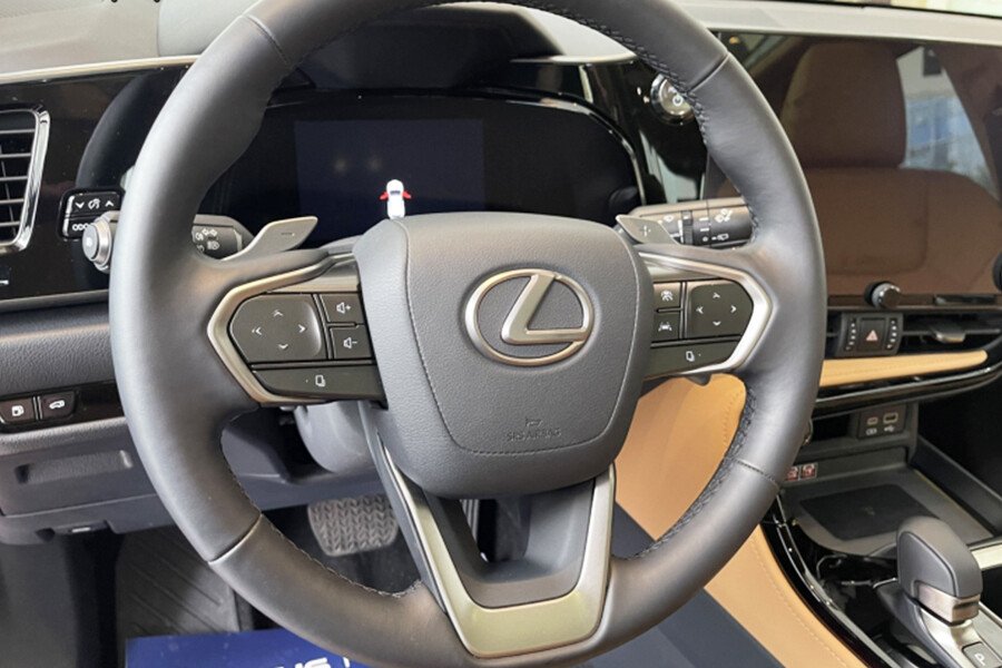 Vô lăng Lexus NX 350h 3 chấu được bọc da, tích hợp rất nhiều phím chức năng. Đặc biệt nhất phải kể tới tính năng theo dõi hoạt động cảm ứng, phát hiện vị trí phím chức năng trên vô lăng đang chạm vào.