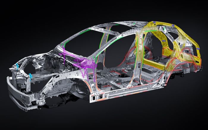 Các thanh giằng và các tấm gia cường được bổ sung vào hệ thống treo cũng như các bộ phận khác của xe Lexus NX 350h. Thép có độ bền kéo cao cũng được sử dụng xuyên suốt giúp tăng độ cứng nhưng đồng thời giúp giảm trọng lượng khung xe.