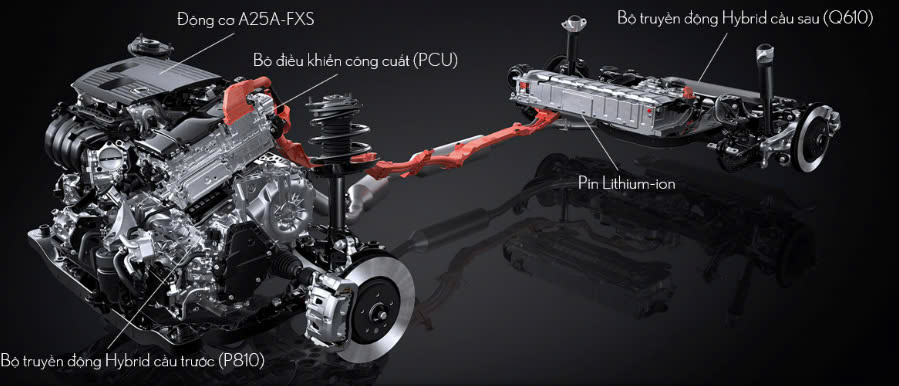 - Động cơ 2.5 lít kết hợp với hệ thống hybrid thế hệ thứ 4, tạo ra công suất 246 mã lực và mô-men xoắn 316 Nm.