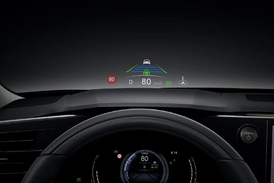 Lexus RX350h Luxury trang bị màn hình màu HUD hiển thị các thông tin lái xe quan trọng trong tầm nhìn của người lái trên phần dưới kính chắn gió phía trước.