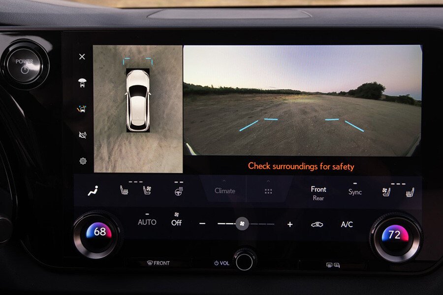 Hệ thông camera 360 độ trên Lexus RX 500h giả lập gầm xe giúp người lái xe chính xác và an toàn hơn.