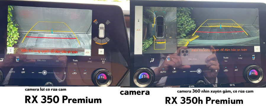 RX 350 premium dùng ca mera lùi góc rộng còn bản RX 350h premium dùng camera 360 độ chính hãng.